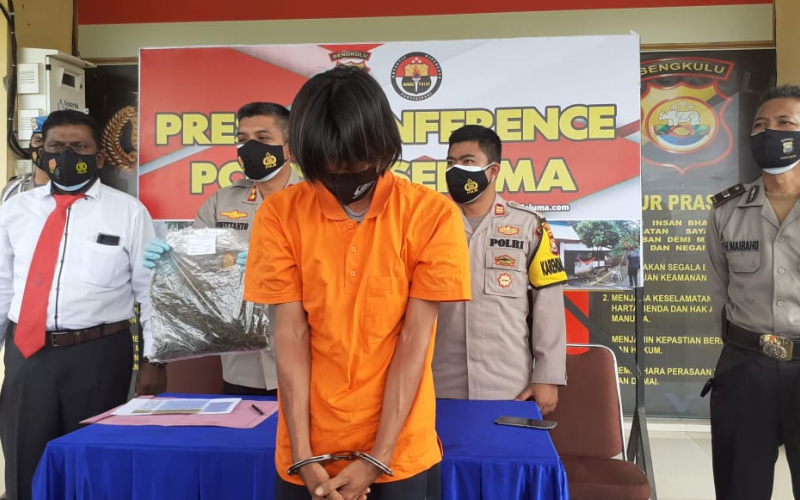 Kronologi penangkapan berawal pada hari, Rabu tanggal (13/1) sekitar pukul 21:00 WIB, anggota Sat ResNarkoba Polres Seluma melakukan Understand Caver memesan Narkotika jenis Ganja satu paket senilai Rp 100.000 lewat Telephone kepada tersangka, kemudian anggota Sat ResNarkoba yang menyamar dan tersangka janjian untuk pengambilan barang di area persawahan di Desa Padang Merbau, namun ditengah perjalanan, tepatnya di persawahan Desa Padang Merbau, Kecamatan Seluma Selatan, Kabupaten Seluma, saat itu tersangka melihat anggota Sat ResNarkoba kemudian tersangka langsung melarikan diri ke arah area persawahan, lalu dilakukan pengejaran oleh anggota Sat ResNarkoba Polres Seluma dan Tersangka berhasil ditangkap.