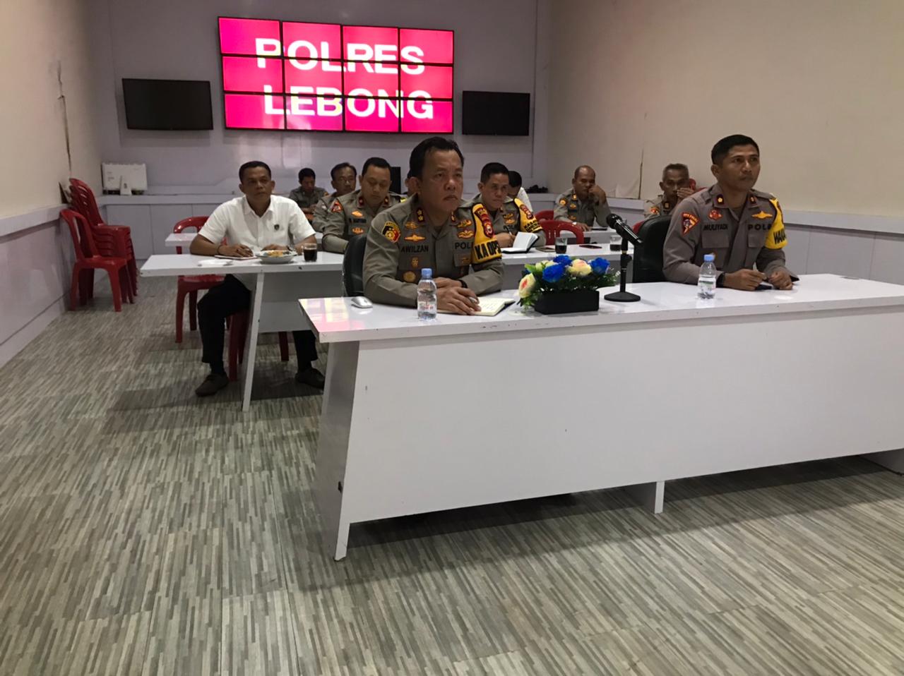 Lebong – Kapolres Lebong Polda Bengkulu AKBP Awilzan, bersama para PJU Polres Lebong, menerima arahan via Zoom Meeting di ruangan Command Center Polres Lebong dari Kapolda Bengkulu Irjen Pol Drs. Armed Wijaya, M.H., Kamis (18/1/2024).