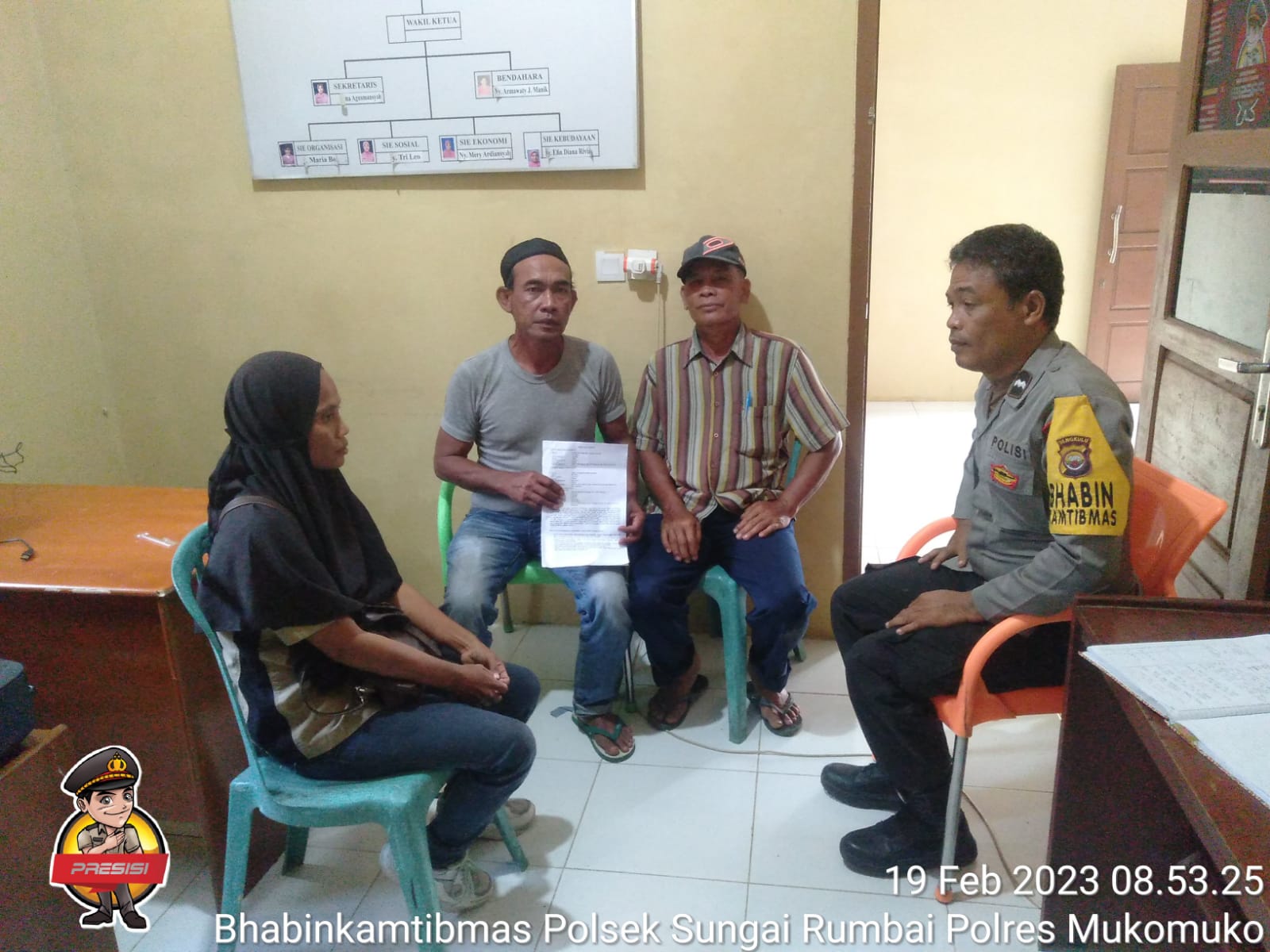 Bengkulu, Siberindo.co – Bhabinkamtibmas Polsek Sungai Rumbai Polres Mukomuko Polda Bengkulu Aipda Rivianto yang bertugas membina warga binaan di Desa Sumber Makmur, melaksanakan kegiatan problem solving atau penyelesaian masalah melalui jalur mediasi, Minggu (19/2/2023).