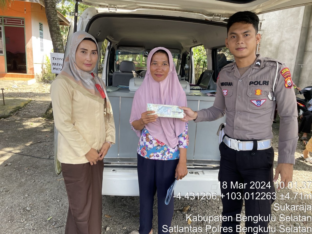 Bengkulu Selatan – Personel Polres Bengkulu Selatan, Sat Lantas Polres Bengkulu Selatan Polda Bengkulu Bripda wiratama luke.F, dan petugas Jasa Raharja serta UPTD Samsat lainya melaksanakan pelayanan Samsat keliling di Kecamatan Seginim Kabupaten Bengkulu Selatan, pada Senin (18/03/24).