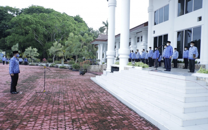 Hari Pertama Kerja Setelah Perayaan Idul Fitri 1442H Pemerintah Kabupaten (Pemkab) Asahan menggelar Upacara Hari Kesadaran Nasional di Halaman Kantor Bupati Asahan, Senin (17/05/2021).