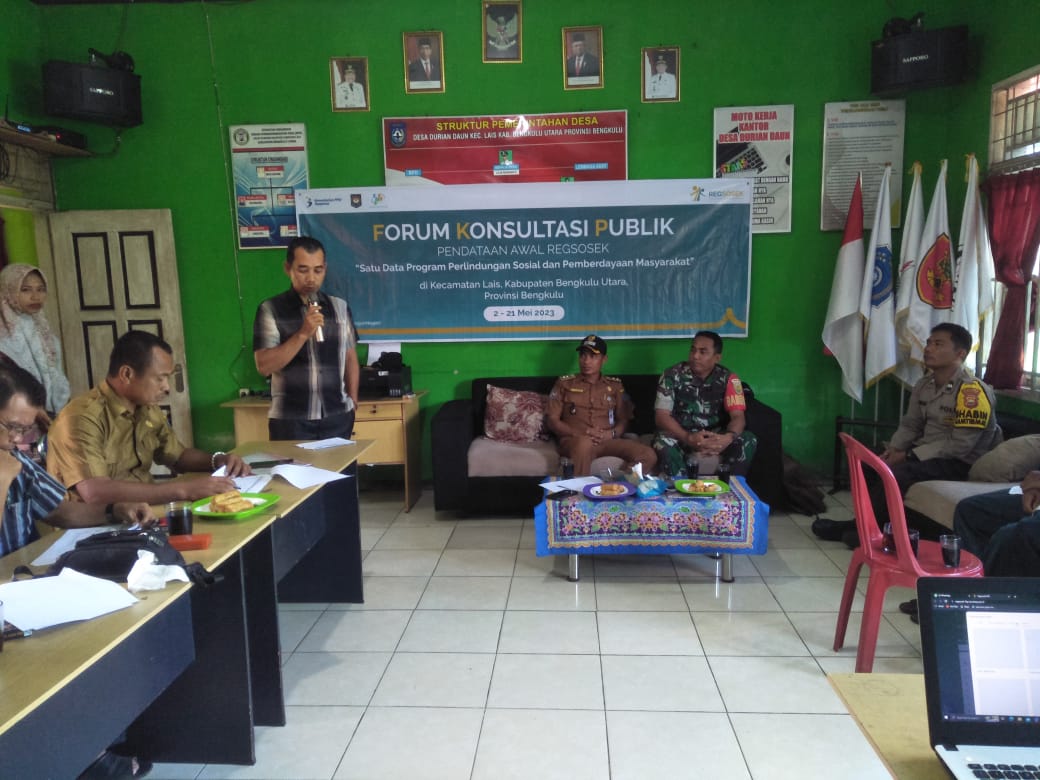 Acara yang diselenggarakan oleh Badan Pusat Statistik kab. Bengkulu Utara dengan difasilitasi oleh kepala desa ini dilaksanakan di kantor desa Durian Daun kecamatan Lais kabupaten Bengkulu Utara dan bertujuan untuk memverifikasi Registrasi Sosial Ekonomi (Regsosek) seluruh warga desa Durian Daun.