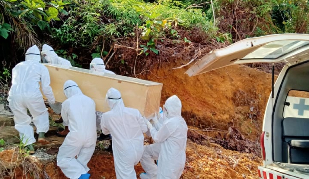 Turut hadir pada pemakaman tersebut, Camat Ngabang Yully Nomensen,S.STP. Kepala Puskesmas Ngabang Albertus Sujatmika serta Tim Satgas Covid-19 Desa Hilir Kantor.
