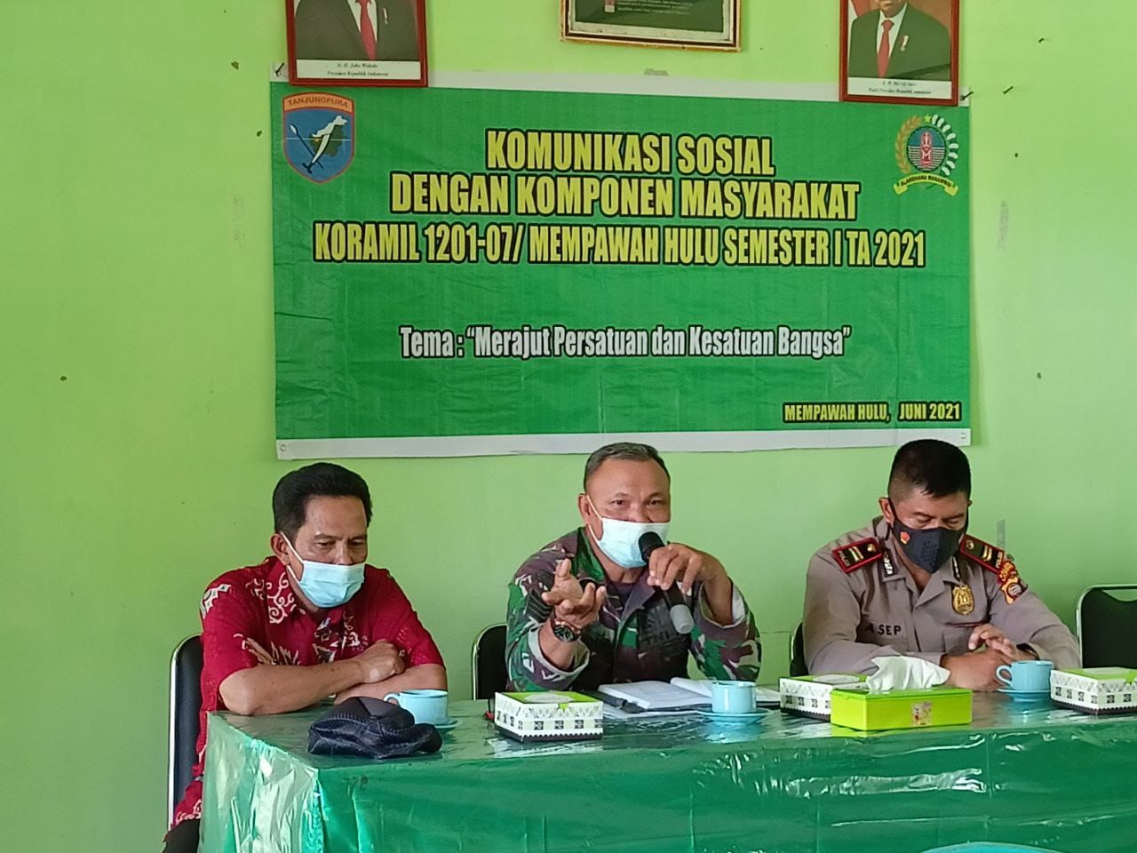 Landak – Untuk meningkatan sinergitas sekaligus menyamakan persepsi dalam menyikapi perkembangan situasi wilayah, Koramil 1201-07/Mempawah Hulu, menggelar pertemuan dengan sejumlah komponen masyarakat di aula Makoramil Mempawah Hulu, Jumat (18/6/2021). Pertemuan dalam rangka komunikasi Sosial (Komsos) ini mengusung tema ‘Merajut Persatuan dan Kesatuan Bangsa’.