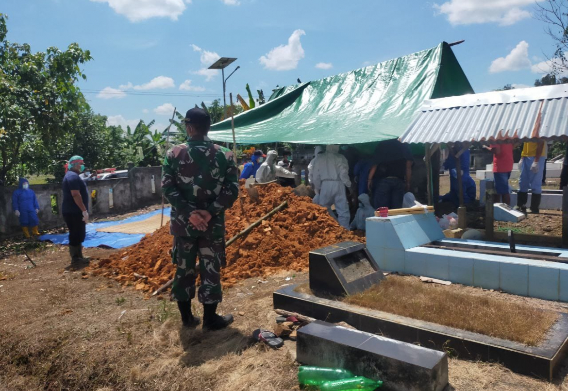 Danramil menjelaskan, masyarakat yang mengikuti prosesi pemakaman ini telah mematuhi protokol kesehatan (Prokes) Covid-19.