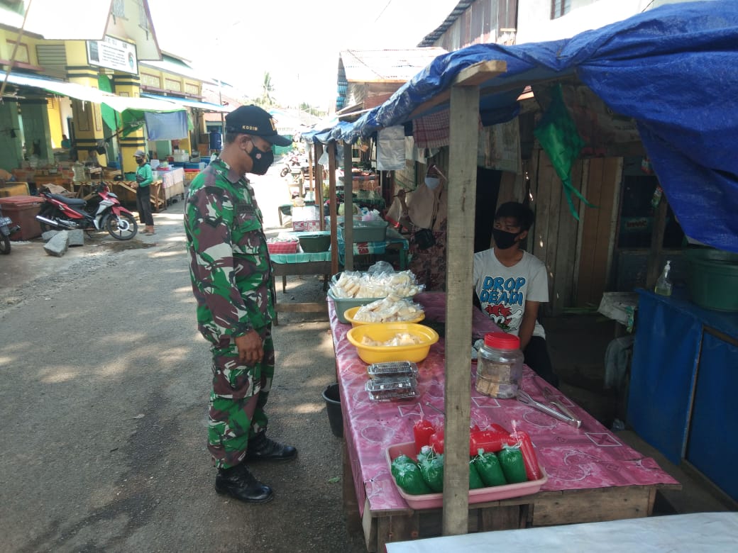 Sertu Supriadi tidak pernah henti–hentinya mengimbau dan menerapkan penegakan disiplin protokol kesehatan terutama tentang penggunaan masker bagi masyarakat yang keluar rumah apalagi ke tempat keramaian seperti ke pasar dan sebagainya.