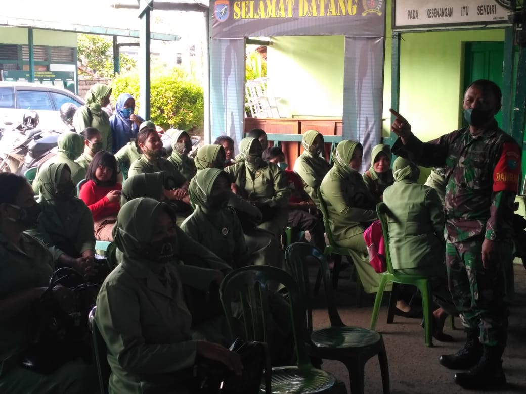 Sebelum melaksanakan Vaksinasi Danramil Peltu Apriadi memberikan arahan kepada Istri anggota (Persit) agar tetap mematuhi protokol kesehatan