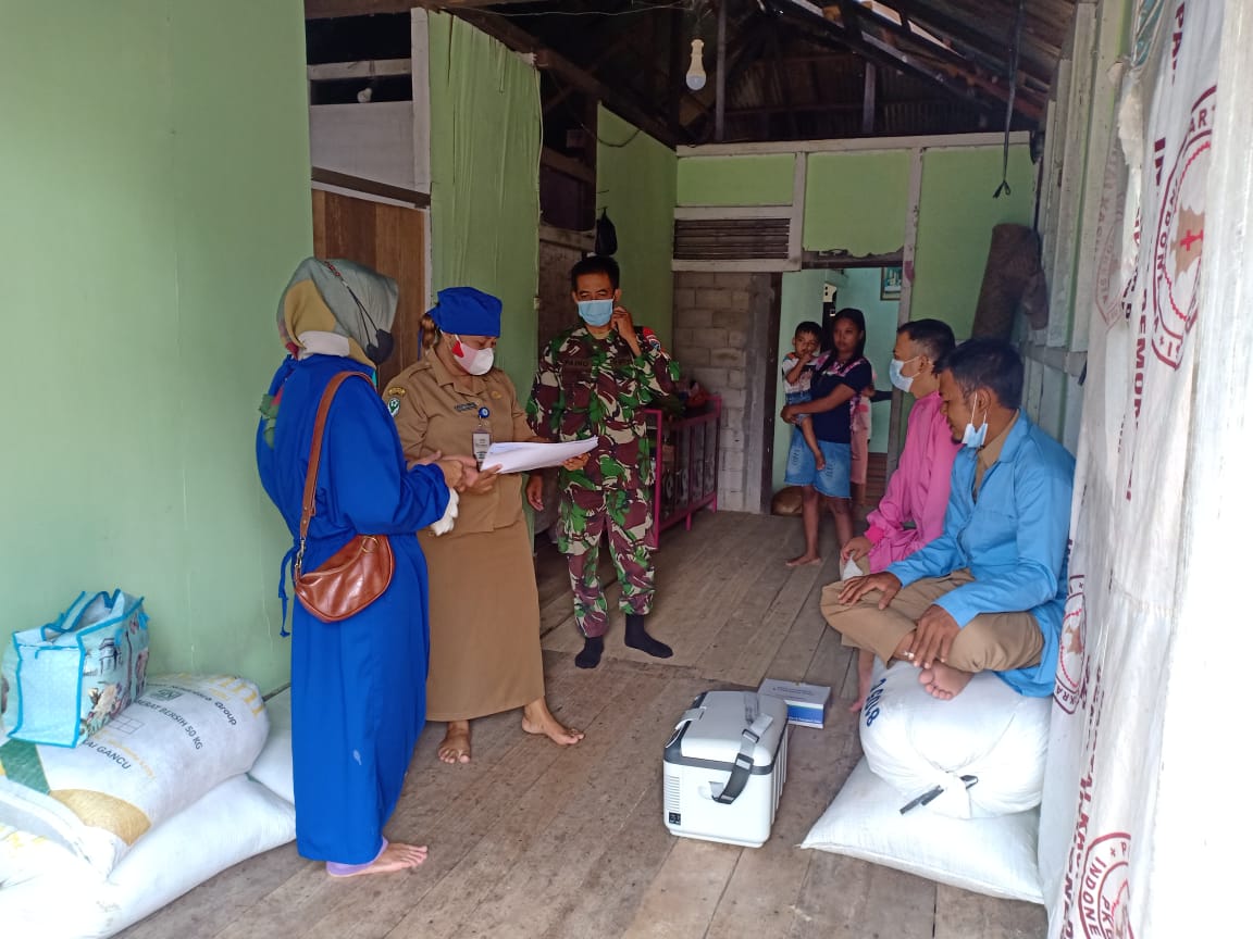 Babinsa Koramil 1201-02/Sungai Pinyuh Serda Paino bersama Tim Tracer dari Puskesmas melaksanakan Tracing terhadap warga yang kontak erat dengan keluarga yangterkonfirmasi Covid 19 di Desa Pak Bulu Kecamatan Anjungan, Kabupaten Mempawah, Selasa (15/6/2021).