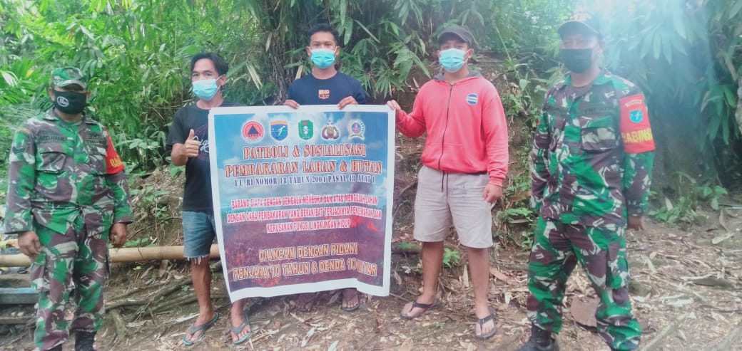 Landak – Koramil 1201-12/Air Besar melakukan sosialisasi pencegahan kebakaran hutan dan lahan (Karhutla) di Desa Serimbu, Kecamatan Air Besar, Kabupaten Landak, Jumat (18/6/2021). Dua personil, masing-masing Sertu Abdul Hamid dan Koptu Sigit diturunkan Koramil untuk memberikan sosialisasi serta edukasi pencegahan karhutla.