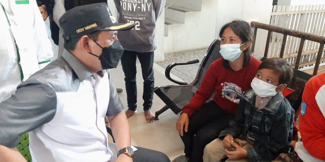 Tampak terburu-buru, Dedy mencari keberadaan keluarga korban.