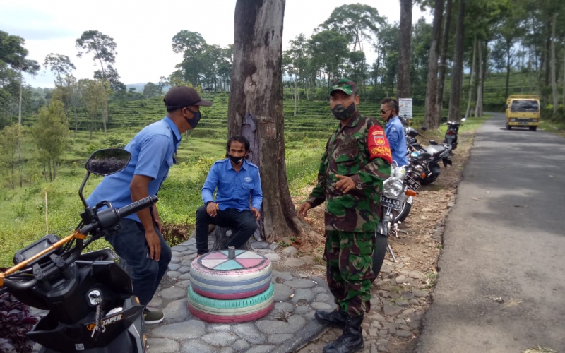 Bintara Pembina Desa (Babinsa) Koramil 09/Blado Jajaran Kodim 0736/Batang mengimbau pengunjung tempat Argo Wisata Pagilaran di Kecamatan Blado, Kabupaten Batang untuk mematuhi protokol,Rabu (18/11/20).