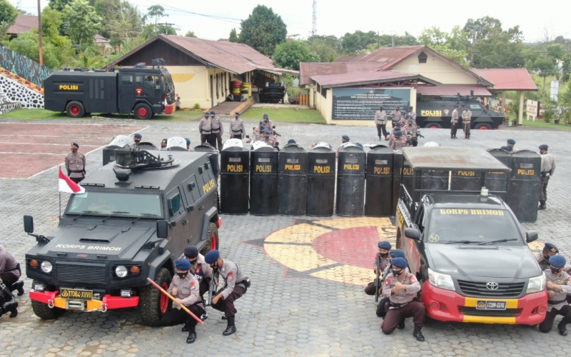 Dalam rangka antisipasi perkembangan situasi Kamtibmas saat ini serta pasca pengitungan suara Pilkada serentak 2020, Personel Satuan Brimob Polda Bengkulu terus memperdalam dan meningkatkan kemampuan Penindakan Huru Hara (PHH) di Lapangan Kesatrian Mako Brimob Polda Bengkulu, Kamis (17/12/2020).