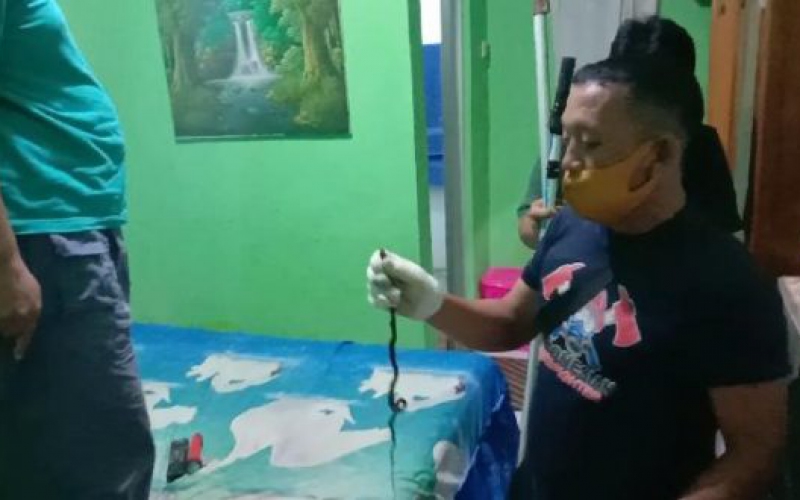 “Team rescue langsung menelusuri keberadaan ular yang berkeliaran dalam rumah. Ular pun ditemukan di bawah kasur, dengan penuh kehati-hatian team langsung mengevakuasi ular cobra. Alhamdulillah evakuasi berjalan lancar dan kondisi rumah kembali kondusif,” jelas Saipul.