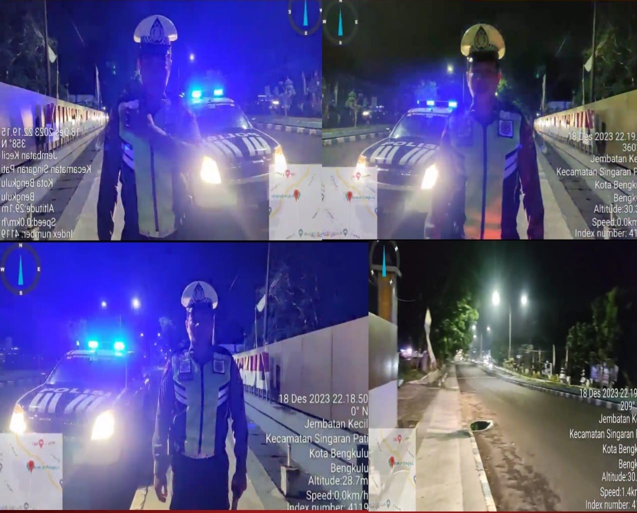 Kapolresta Bengkulu Kombes Pol Aris Suliyo melalui Ps Kasat Lantas AKP Nyimas Sopia menyampaikan untuk menjaga kamtibmas kondusif Personel Sat Lantas setiap malam melakukan patroli blue light mengantisiapasi adanya kegiatan balap liar yang di lakukan anak anak muda di seputaran wilkum dan bentuk kegiatan pencegahan terjadinya kejahatan di lingkungan masyarakat.