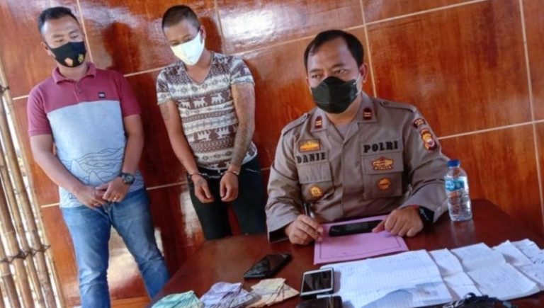 Bersama pria bertato yang sebelumnya bekerja sebagai penambang tradisional ini, petugas mengamankan barang bukti berupa uang tunai Rp 1.300.000.