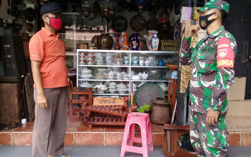 Jum’at (19/02/2021) Babinsa Kelurahan Keprabon Koramil 02/Banjarsari Kodim 0735/Surakarta Serda Sugiyanto melaksanakan kegiatan Pemberlakuan Pembatasan Kegiatan Masyarakat (PPKM) bertempat di Pasar Triwindu , jalan Diponegoro kelurahan Keprabon kecamatan Banjarsari kota Surakarta.