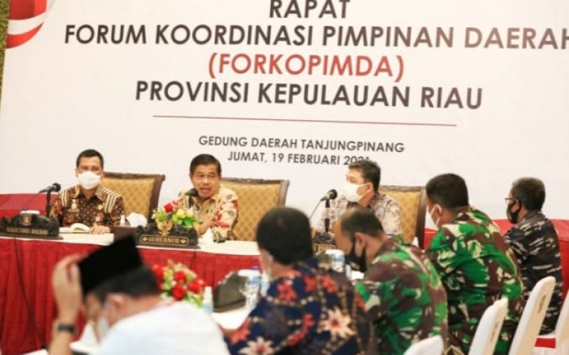 Penjabat (Pj) Gubernur H Suhajar Diantoro memimpin secara langsung Rapat Bersama Forkopimda Provinsi Kepulauan Riau di Gedung Daerah, Tanjungpinang, Jumat (19/02).