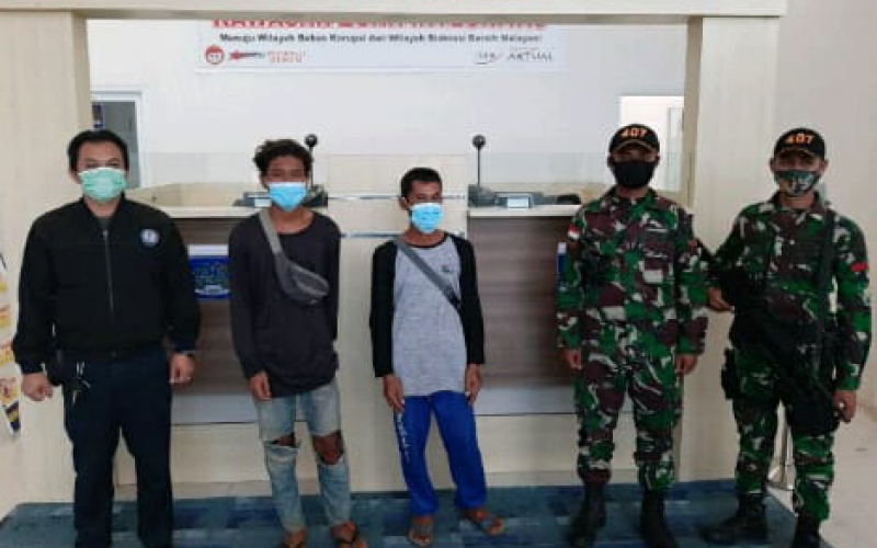 “Personel Pos Lubuk Antu yg melaksanakan Jaga Di Pos PLBN saat berpatroli di sekitaran jalan sawit dekat PLBN Nanga Badau, Melihat 2 orang yg melintas di jalan Sawit dari arah Malaysia menuju ke Indonesia. Setelah ditanyai identitas kedua orang tersebut ternyata WNI yang kembali dari Malaysia melalui jalur yang tidak resmi,” ungkap Dansatgas.