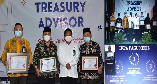 Penganugrahan yang diserahkan langsung oleh Kepala KPPN Bengkulu, Ady Wijaya Joanes Brebeuf itu, diterima langsung oleh Kakan Kemenag BU, Drs H Ajamalus MH, bersamaan dengan diterimanya pula penganugrahan kepada Kanwil Kemenag Provinsi Bengkulu selaku peraih Treasury Award, tahun 2020, kategori pagu kecil ketiga, penilaian pelaporan keuangan terbaik lingkup KPPN Bengkulu, dan Kantor Kemenag Kabupaten Bengkulu Tengah (Benteng), yang juga meraih predikat yang sama.
