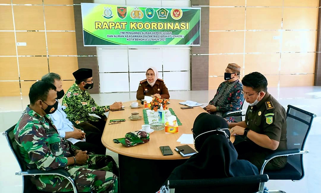 Rakor tersebut langsung dipimpin dan dibuka oleh Kepala Kejaksaan Negeri Kota Bengkulu, Irene Putri, yang dihadiri oleh peserta Rakor dari Kesbangpol, FKUB, Kementerian Agama, Kajari, Kodim 0407, Badan Intelijen Negara, Polres Kota Bengkulu.