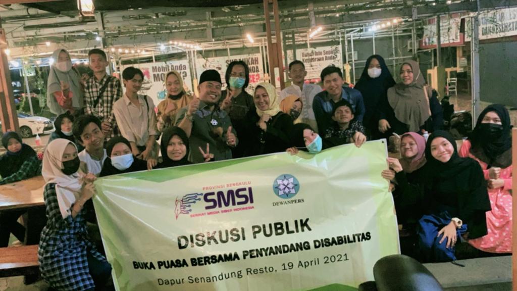 Bengkulu, Siberindo.co – Serikat Media Siber Indonesia (SMSI) Bengkulu mengadakan buka puasa bersama 25 penyandang disabilitas yang dibina oleh Yayasan Pijar Qalisya pimpinan Ita Yunita. Buka puasa yang digelar di Dapur Senandung Resto, Senin (19/4/2021) dihadiri oleh Wakil Ketua Dewan Pers Hendry Ch Bangun, Ketua PWI Zacky Antoni, Advokat A Yamin SH, Dewan Penasihat SMSI Bengkulu Oktarina Syafrudin, Kabapas Resman Hanafi, pimpinan media siber dan wartawan, serta mahasiswa.