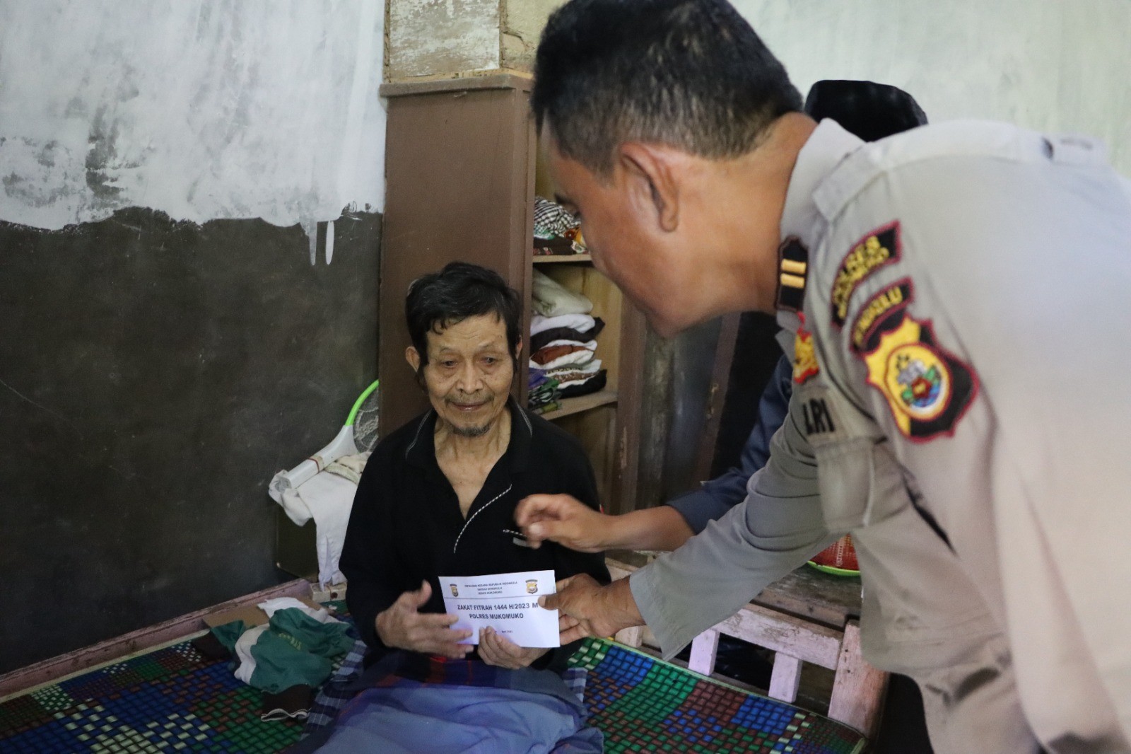 Personel Polres Mukomuko saat memberikan zakat disambut hangat oleh oleh masyarakat yang benar-benar harus diberikan zakat.