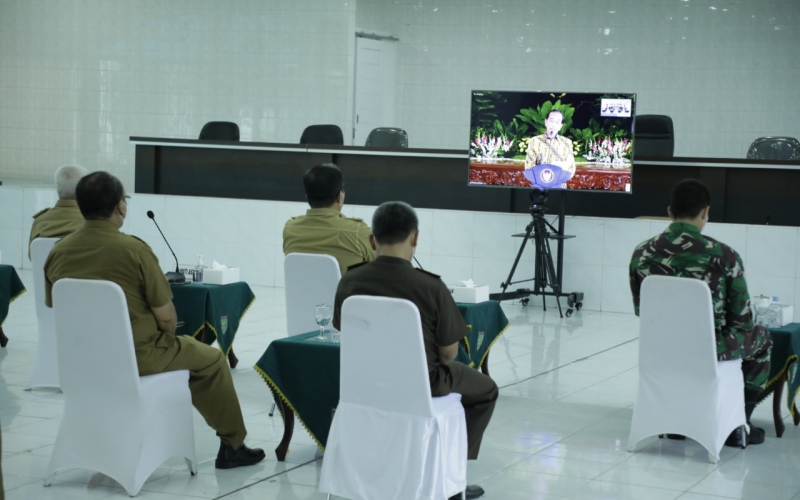Bupati dan Wakil Bupati Asahan beserta Forkopimda mengikuti pengarahan Presiden Republik Indonesia (RI) Tahun 2021 secara virtual bertempat di Aula Melati Kantor Bupati Asahan, Senin (17/05/2021).