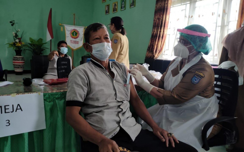 Ratusan Purnawirawan dan Warakawuri Kabupaten Bengkulu Utara, Provinsi Bengkulu, mengikuti vaksinasi serentak. Vaksinasi ini digelar disejumlah titik di wilayah Bumi Ratu Samban hari ini, Selasa (18/5/2021).