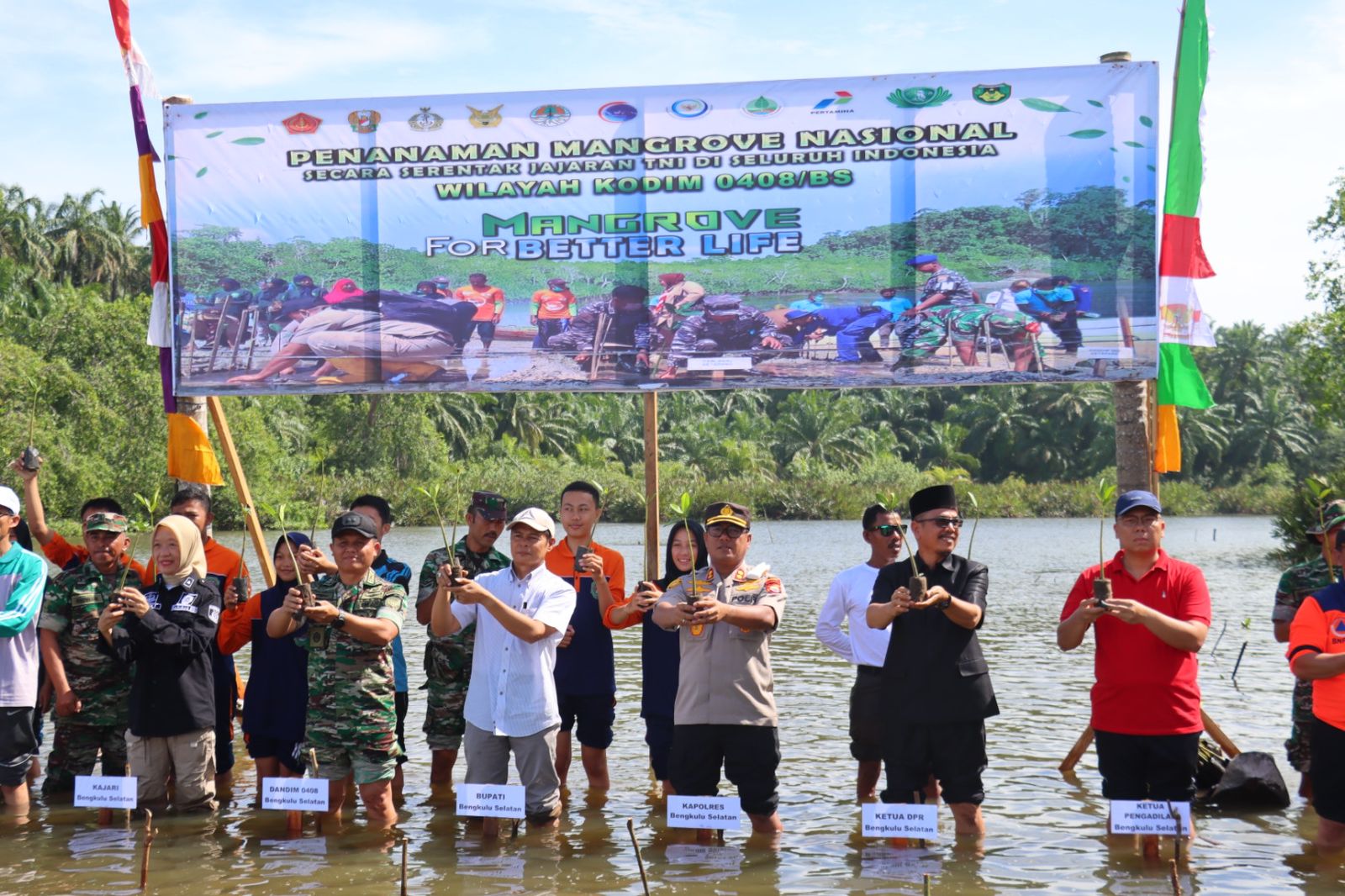 Dandim 0408 BS Letkol Inf Aswin Suladi mengatakan agenda penanaman mangrove dilakukan serentak seluruh indonesia dan di Kabupaten Bengkulu Selatan dilakukan di Desa Pasar Pino.