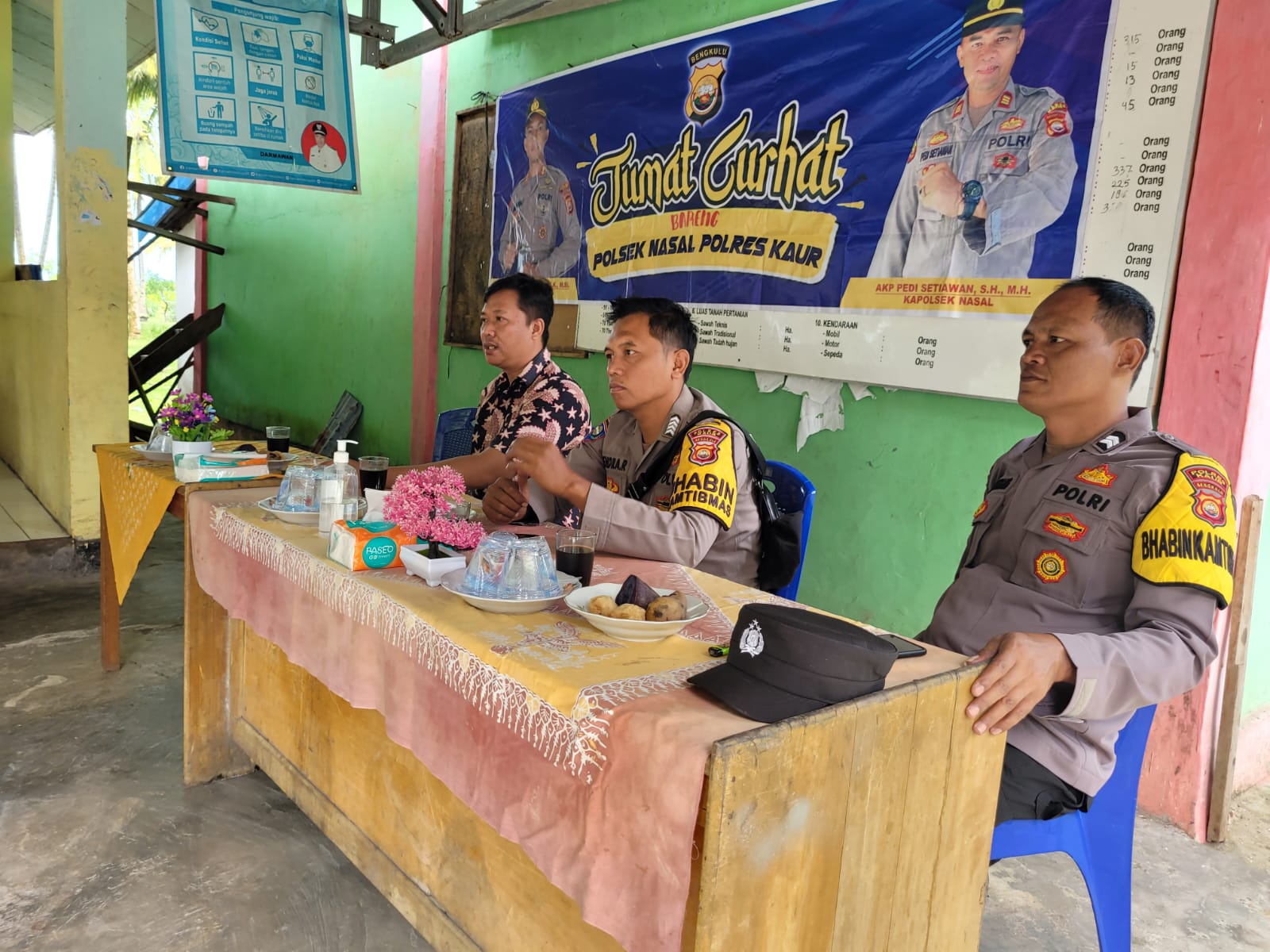 Kaur – Polsek Nasal Polres Kaur Polda Bengkulu, menggelar Jumat Curhat di Desa Batu Lungun Kecamatan Nasal, Kabupaten Kaur, Jumat (19/5/2023).