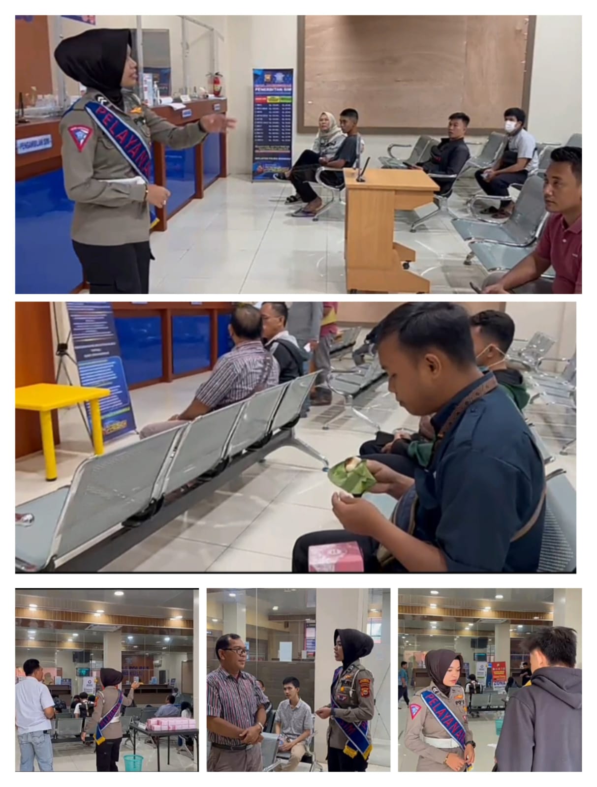 ”Saya menginformasikan kepada bapak ibu pemohon SIM, SKCK, Sidik Jari dan Pelapor di SPKT, bahwa hari Jumat ini Polresta Bengkulu menggelar Program Jumat Berbagi dengan menyediakan Snack dan Minuman Gratis yang terpajang di Meja Pelayanan. Silahkan bapak ibu untuk menikmatinya, ” tutur Briptu Ratu.