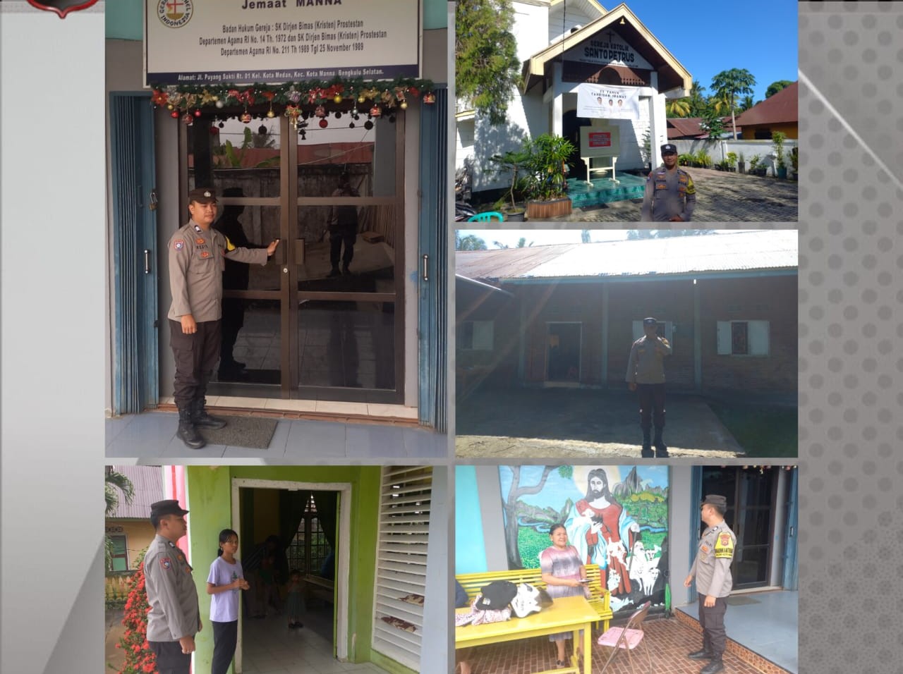 “Dalam kegiatan pengamanan ibadah Minggu di Gereja GKSBS Melao Kecamatan Kota Manna Bengkulu Selatan, pihaknya Melakukan pengamatan lokasi dan lingkungan beribadah, Melakukan sterilisasi lokasi serta Melakukan pantauan terhadap jemaat yang melaksanakan ibadah,” pungkas Kasi Humas Akp Sarmadi