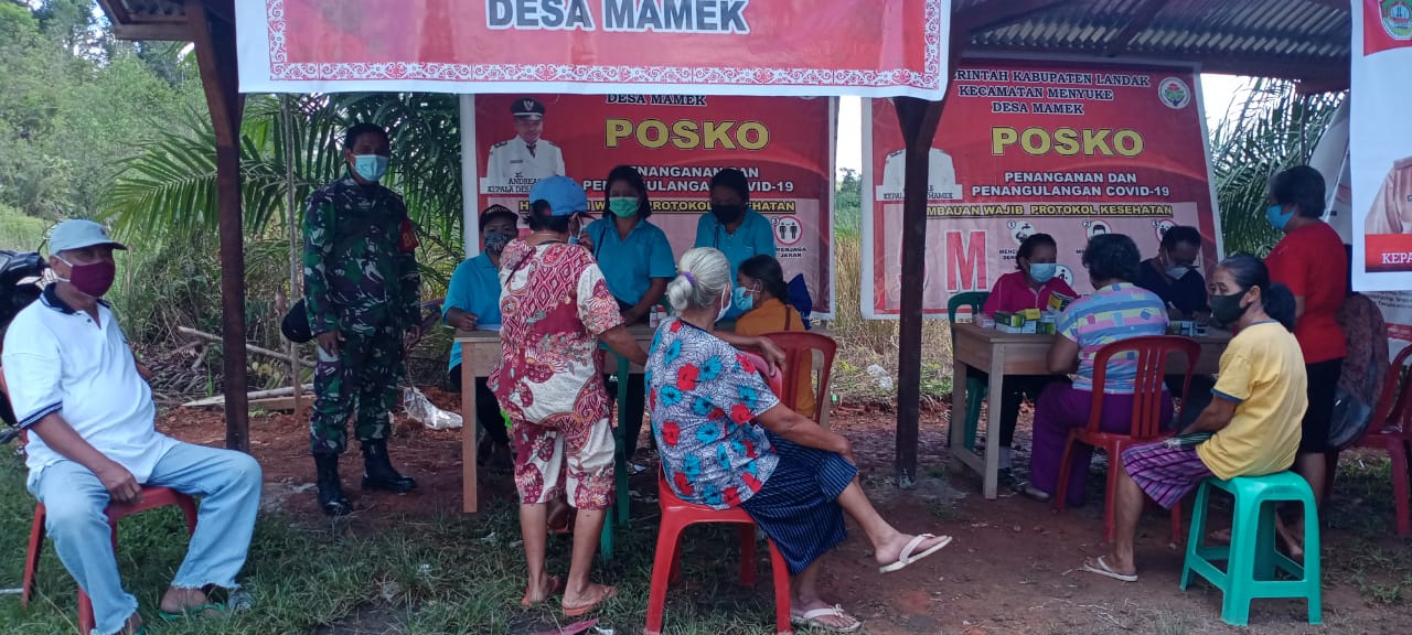 LANDAK- Babinsa Koramil 1201-10 Menyuke,Serda Sahwady melaksanakan pendampingan Posbindu, Sebagai wujud kepedulian terhadap Kesehatan di Wilayah Binaan, Kegiatan berlangsung di Kantor Desa Mamek Kecamatan Menyuke Kabupaten Landak.Sabtu (19/6/2021)