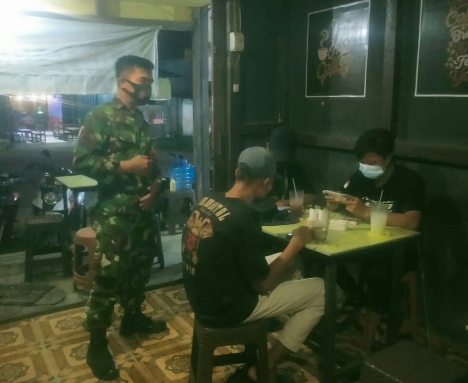 Landak – Razia pembatasan kegiatan masyarakat kembali dilaksanakan Anggota Koramil 1201-09/Sengah Temila dalam rangka memutus mata rantai Covid 19 di wilayah Kecamatan Sengah Temila, Sabtu (19/6/2021).