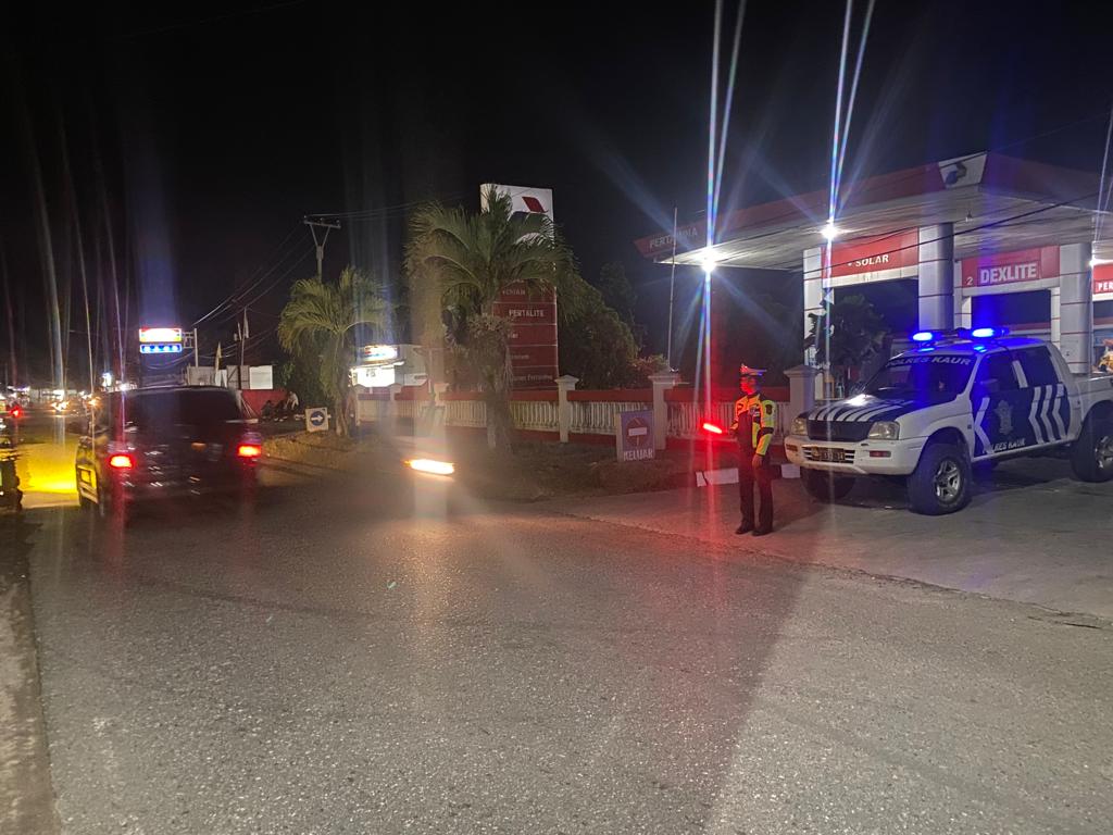 Kaur – Polres Kaur Polda Bengkulu, Melaksanakan Pantauan Arus Lalu Lintas dan Prokes di Jalan Raya Lintas Sumatera Kota Bintuhan, Minggu (18/06/2023) Pukul 20.00 WIB s/d 21.00 WIB.