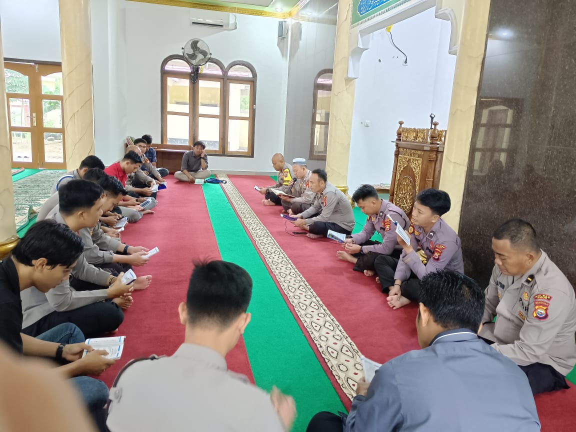 Kaur – Personel Polres Kaur Polda Bengkulu, melaksanakan Bimbingan Rohani dan Mentall (Binrohtal) dengan membaca Yasin bersama di Masjid Baiturrahman Polres Kaur, Kamis (20/07/2023) Pukul 08.00 Wib s/d Selesai.