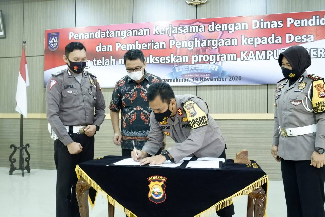 Bengkulu, Siberindo.co – Polres Bengkulu Utara bersama Dinas Pendidikan (Dispendik) Kabupaten Bengkulu Utara melakukan penandatanganan nota kesepahaman atau MoU. Terkait program pendidikan lalu lintas dalam upaya mewujudkan pelajar taat lalu lintas di Kabupaten Bengkulu Utara.