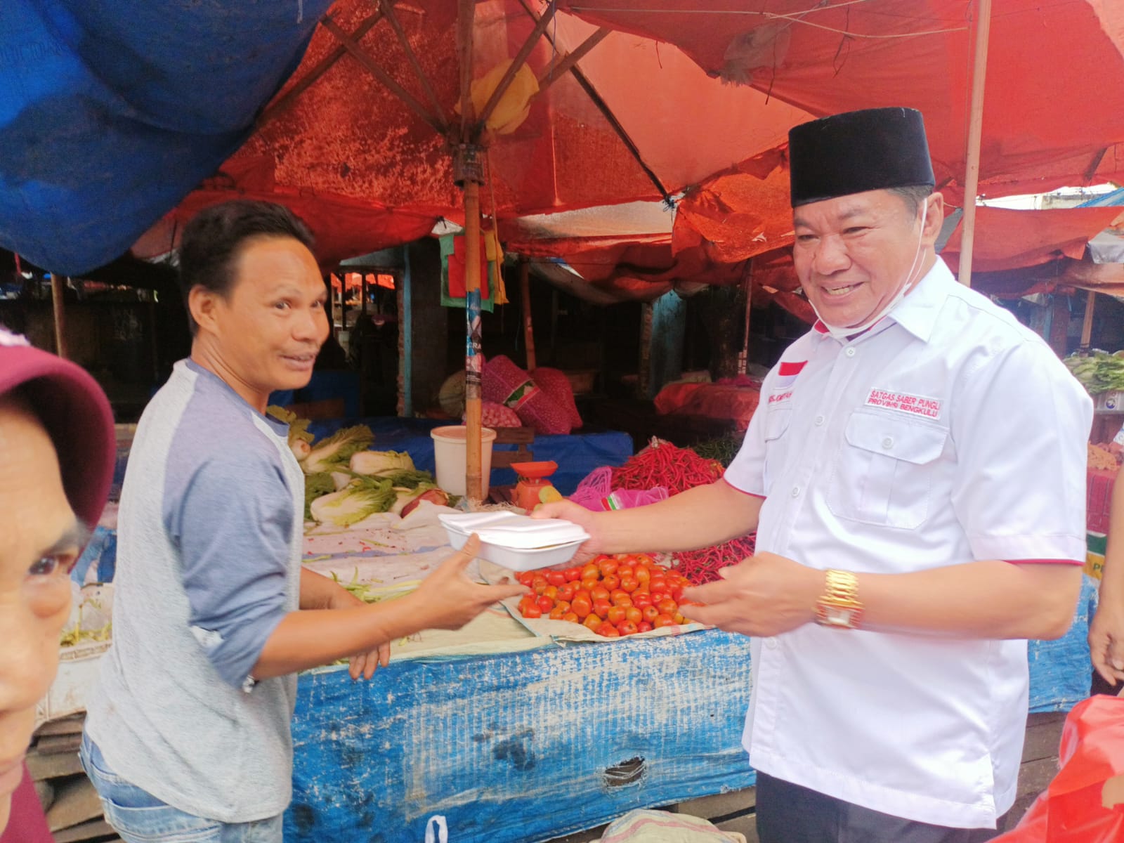 Kegiatan berbagi yang dilaksanakan Satgas Saber Pungli pagi ini di Pasar Panorama Kota Bengkulu diikuti langsung oleh Wagub Rosjonsyah, (19/11/2021).