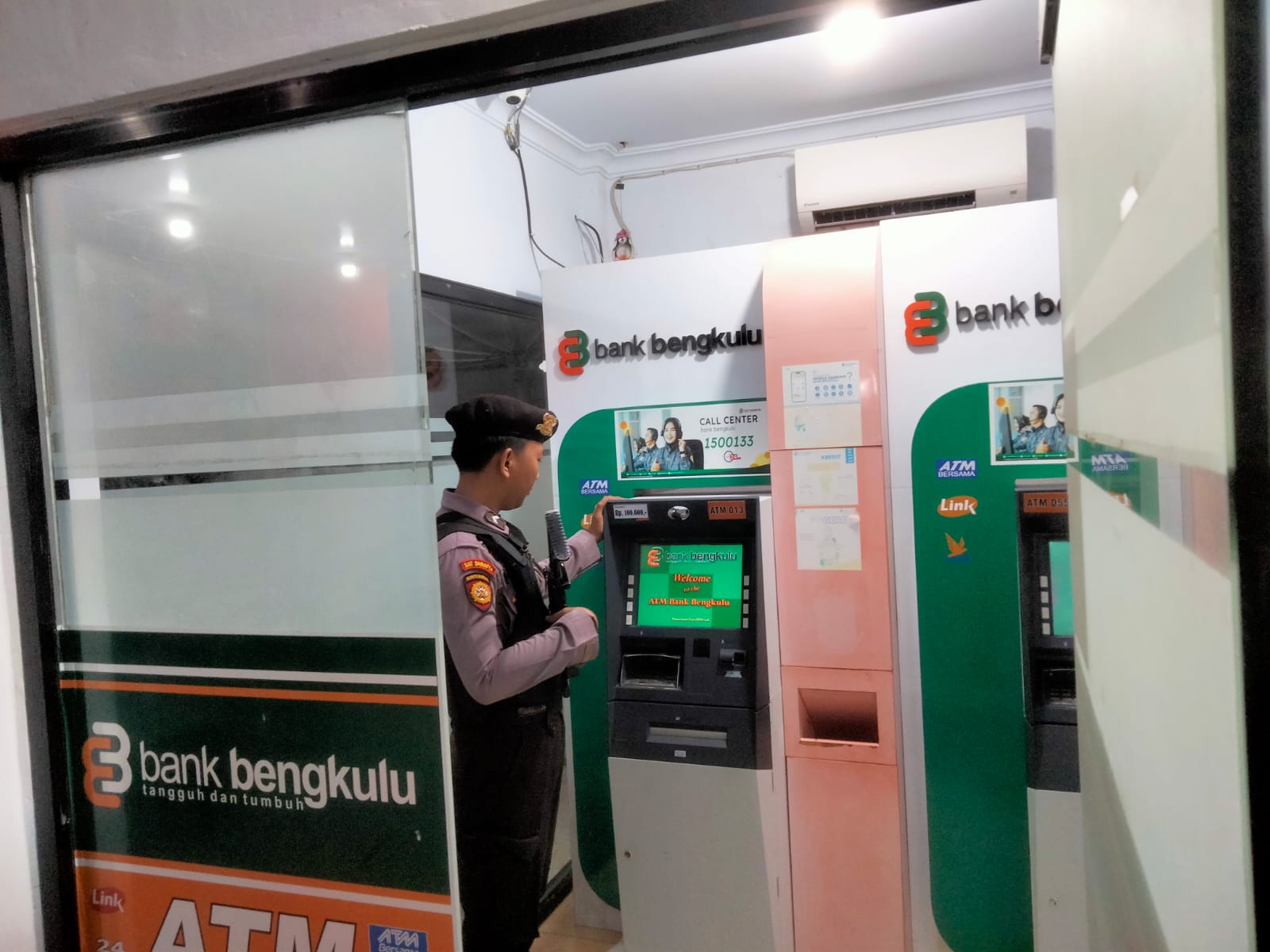 Kaur – Polres Kaur Polda Bengkulu Melakukan Patroli, Mengecek Situasi dan kondisi seputaran Anjungan Tunai Mandiri ( ATM ) di Bank di Kota Bintuhan, yakni, Bank BPD Cabang Kaur, Bank BRI Unit Air Dingin, Bank BNI Cabang Kaur di Kab Kaur Pada hari Minggu, (19/11/2023).