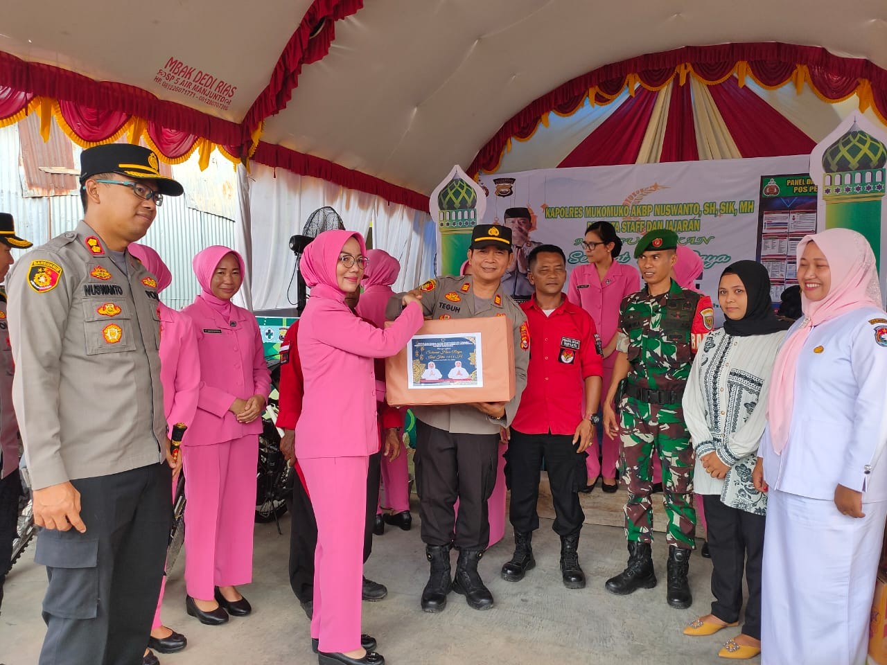 Kegiatan pemberian bingkisan ini dilaksanakan hari Kamis (20/04/2023), pukul 14.00 WIB s/d selesai, yang diberikan langsung oleh Kapolres Mukomuko AKBP Nuswanto, S. H,S.I.K,M.H bersama Ketua Bhayangkari Cabang Mukomuko Ny. Steva Nuswanto.