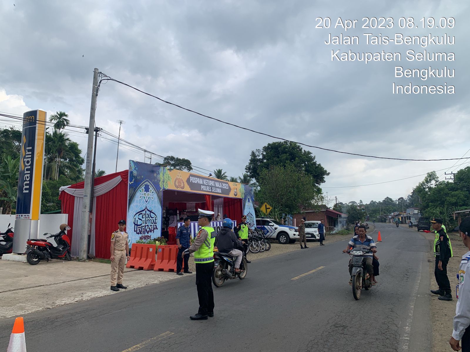 Seperti yang terlihat apda Kamis (20/4/2023), personel Ops Ketupat Nala mulai melakukan pengaturan arus lalu lintas di Pos Pengamanan Simpang 6 Pemda Seluma dan Pos Pengamanan Sukaraja.