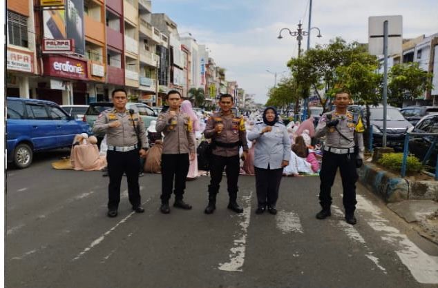 Sebelum masyarakat datang ke lokasi tempat Salat Ied, personel sudah berada di lokasi untuk melaksanakan Pengamanan dan Pengaturan arus lalu lintas.