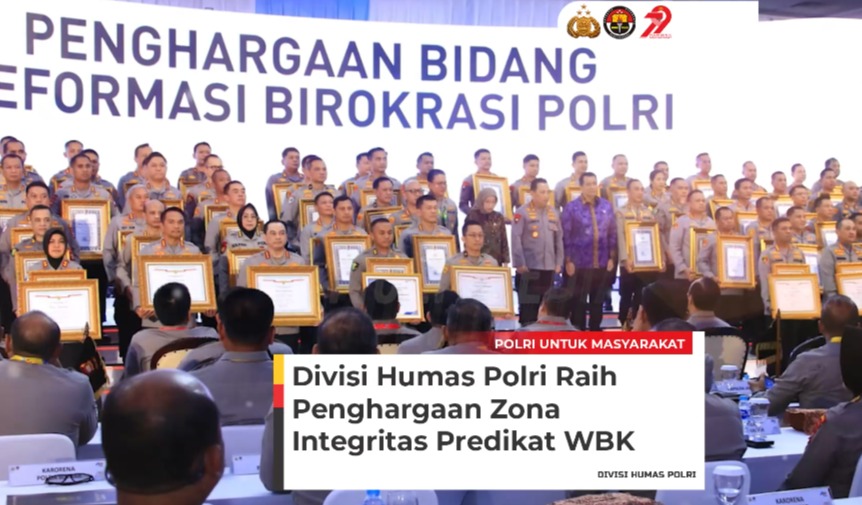 Jakarta – Divisi Humas Polri kembali menorehkan prestasi gemilang dengan meraih penghargaan Pembangunan Zona Integritas berpredikat Wilayah Bebas dari Korupsi (WBK).