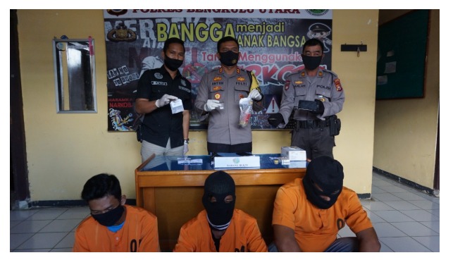 Kapolres Bengkulu Utara Polda Bengkulu Ajun Komisaris Besar Polisi (AKBP) Anton Setyo Hartanto S.IK MH didampingi Kasat Narkoba Iptu Bayu Heri P SH MH bersama Kasubbag Humas AKP Darlan dalam press release di Mapolres Bengkulu Utara, Selasa (21/7/2020) mengatakan, berdasarkan pengembangan kasus SJ, petugas kemudian melakukan penyelidikan dan berhasil mendapati keberadaan RS. Kemudian petugas mengamankan RS bersama barang bukti 1 paket Narkoba jenis sabu.