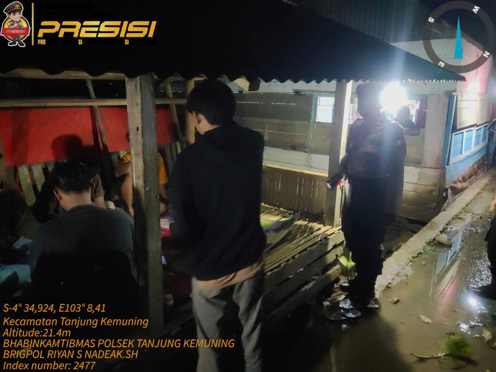 Personel Polsek Tanjung Kemuning melaksanakan Patroli Diologis guna mengantisipasi 3C, Patroli kali ini dilaksanakan oleh Aipda Fadli K., Brigpol R S Nadeak, Bripda Revanza Aldo, dan Bripda T. Rasyid.