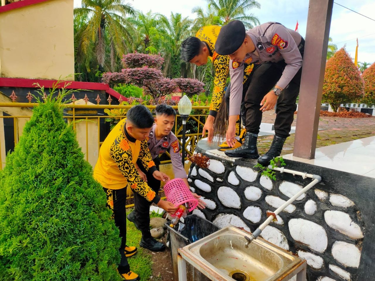 Mukomuko – Kapolres Mukomuko AKBP Nuswanto, S.H., S.I.K., M.H., yang di dampingi oleh waka Kompol Ahmad Musrin Muzni, S.H., S.I.K., dan seluruh PJU polres Mukomuko, perwira, anggota dan ASN polres Mukomuko, melaksanakan pembersihan lingkungan kantor ( korve ) Polres Mukomuko.