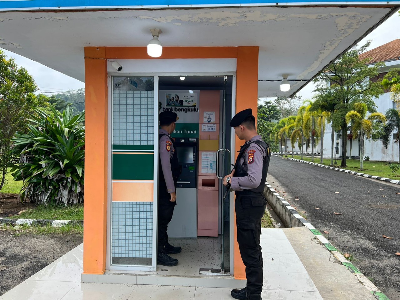 Sat Samapta Polres Kaur Melakukan Patroli, mengecek situasi dan kondisi seputaran Anjungan Tunai Mandiri (ATM) di Bank di Kota Bintuhan, yakni, Bank BPD Cabang Kaur, Bank BRI Unit Air Dingin dan Bank BNI Cabang Kaur Bintuhan di Kabupaten Kaur, dan memberikan imbauan kepada satuan pengamanan yang berjaga agar selalu tetap waspada terhadap tindak pidana disekitar Bank.