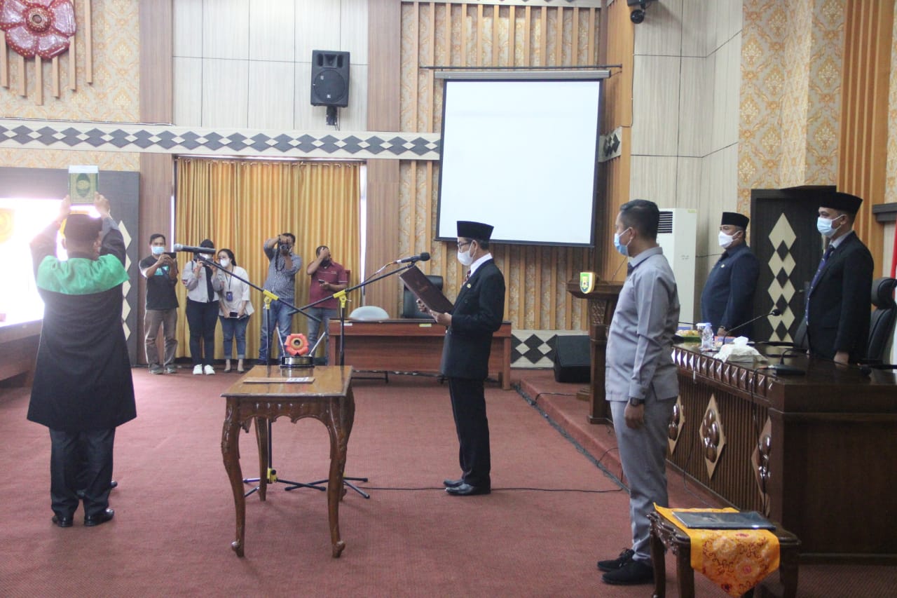 Dutawarta.com – Asisten III Setda Provinsi Bengkulu Gotri Suyanto pimpin Pelantikan Pergantian Antar Waktu (PAW) Anggota Komisi Informasi Provinsi (KIP) Bengkulu Periode 2018-2022 mewakili Gubernur Bengkulu, di Ruang Pola Provinsi Bengkulu, Kamis (21/10/2021).