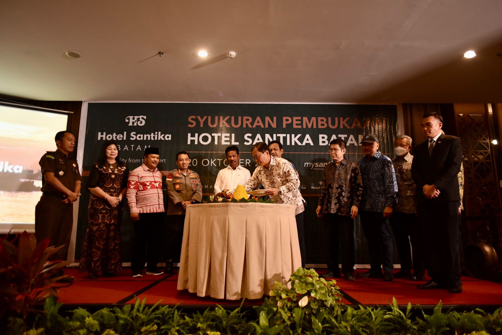 Pemotongan tumpeng dilakukan oleh Muljadi Djaja selaku Direktur Utama PT Multi Daya Investama yang kemudian diberikan kepada Johanes Widjaja selaku Direktur Utama PT Grahawita Santika dan kemudian diteruskan kepada Sukardi selaku General Manager dari Hotel Santika Batam.