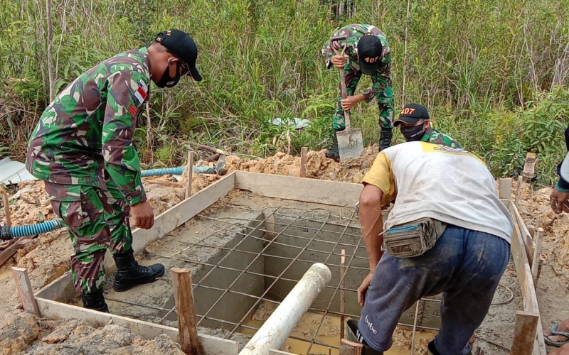 Danramil 07/Sukorejo beserta jajarannya melaksanakan kegiatan gotong royong bersama warga membantu korban tanah longsor di Dusun Gebudan Rt.03 Rw.05 Desa Gentinggunung Kecamatan Sukorejo Kabupaten Kendal. Jum’at, 18/12/2020.